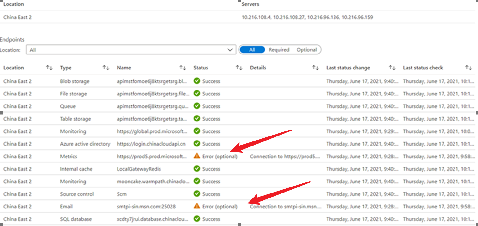 1)因为NSG的缘故,必须的端口不通。导致APIM的网络连接状态“Network connectivity status”页面中状态显示为 Error