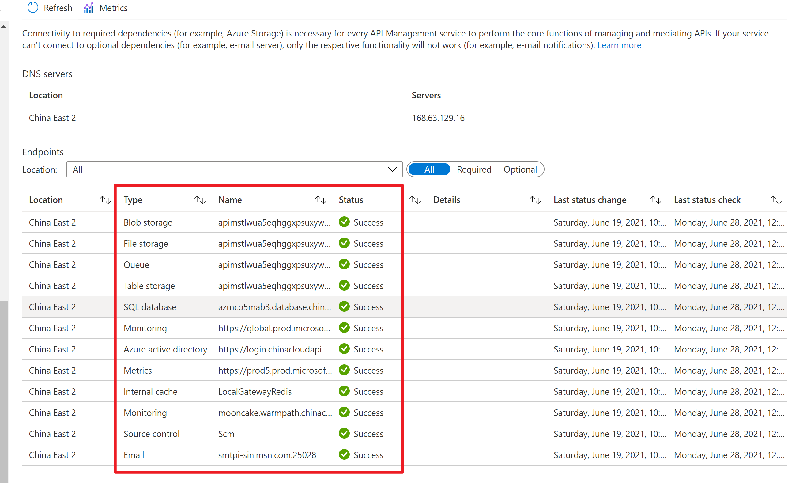 **第三项:**对于被强制进行隧道传输的其他 API 管理服务依赖项,应该有一种方法来解析主机名并访问该终结点。 其中包括: