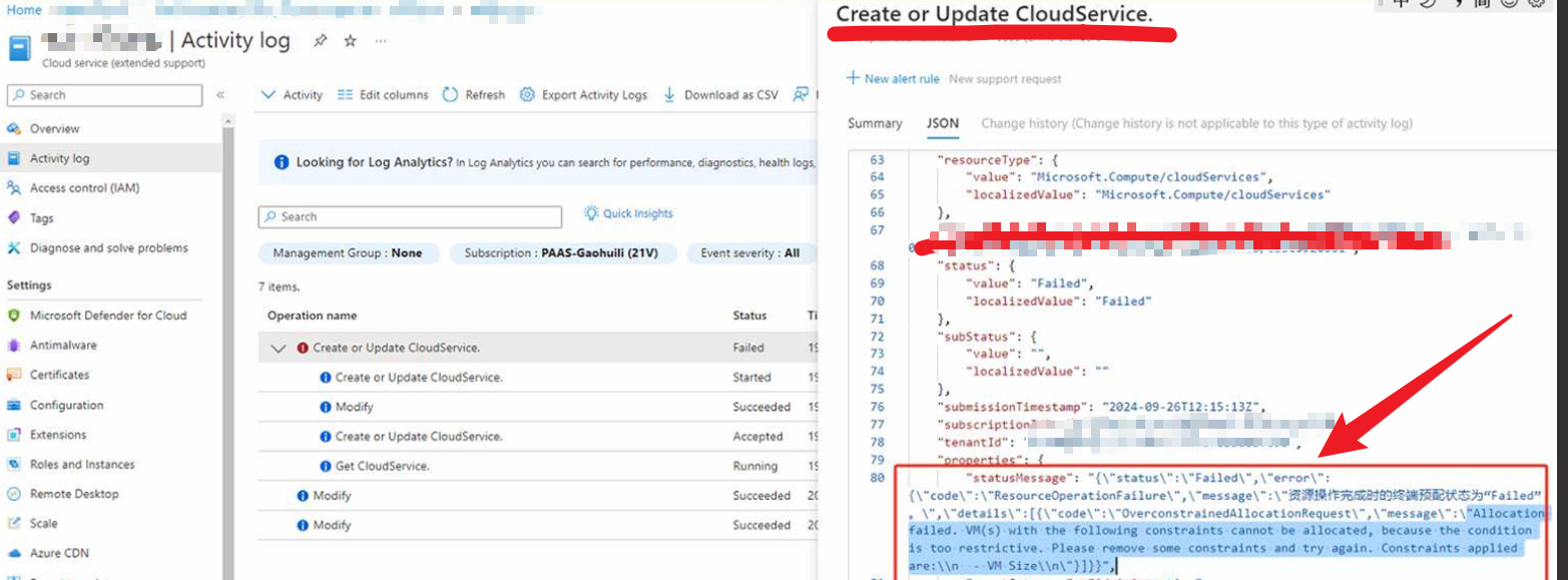 创建Azure Cloud Service 资源,遇见资源操作完成时的终端预配状态为Failed的信息。