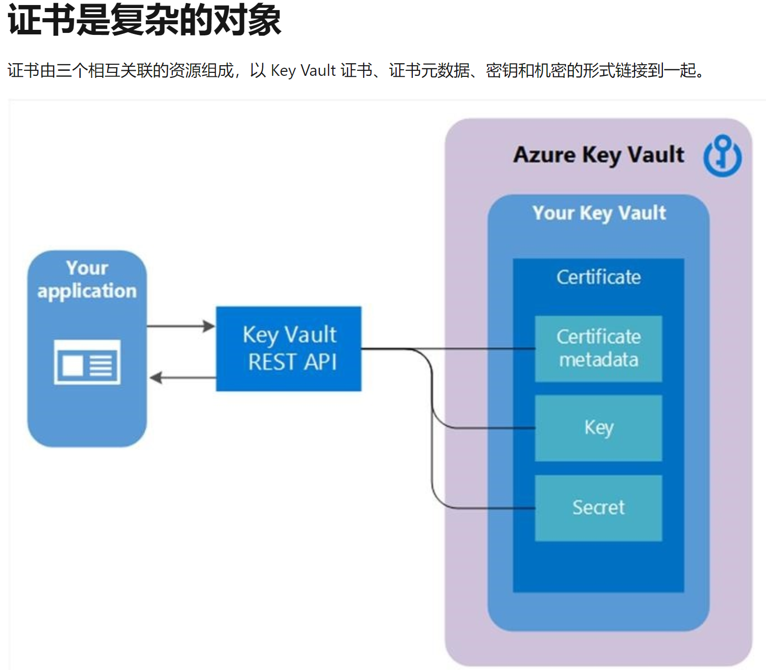 关于 Azure Key Vault 证书,密钥保管库证书支持适用于 x509 证书管理,它提供以下行为: