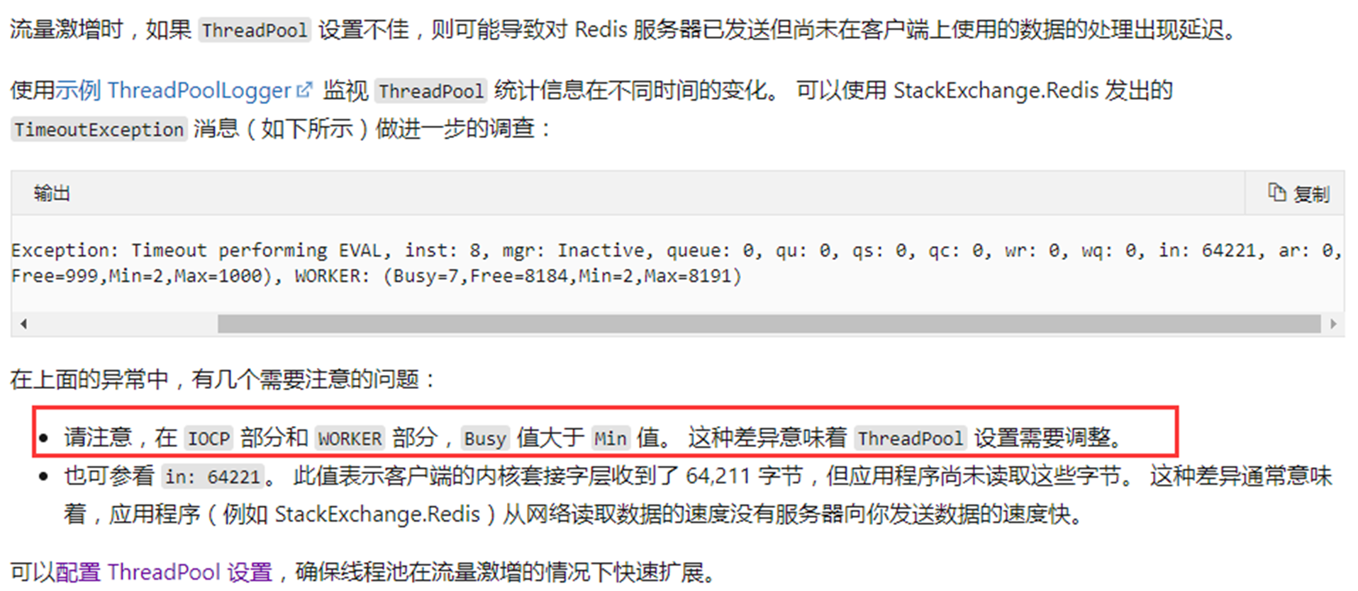 排查 Azure Cache for Redis 超时问题:https://docs.azure.cn/zh-cn/azure-cache-for-redis/cache-troubleshoot-timeouts