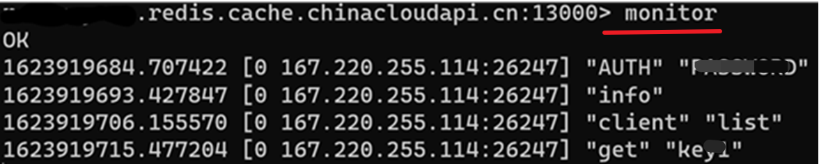 可以通过Redis-cli.exe工具连接到Redis后,通过 client list 当前的客户端连接情况和IP地址,已经通过numops查看当前连接已经执行的OPS。然后通过 monitor 指令实时监控命令的执行和所发出请求的IP地址
