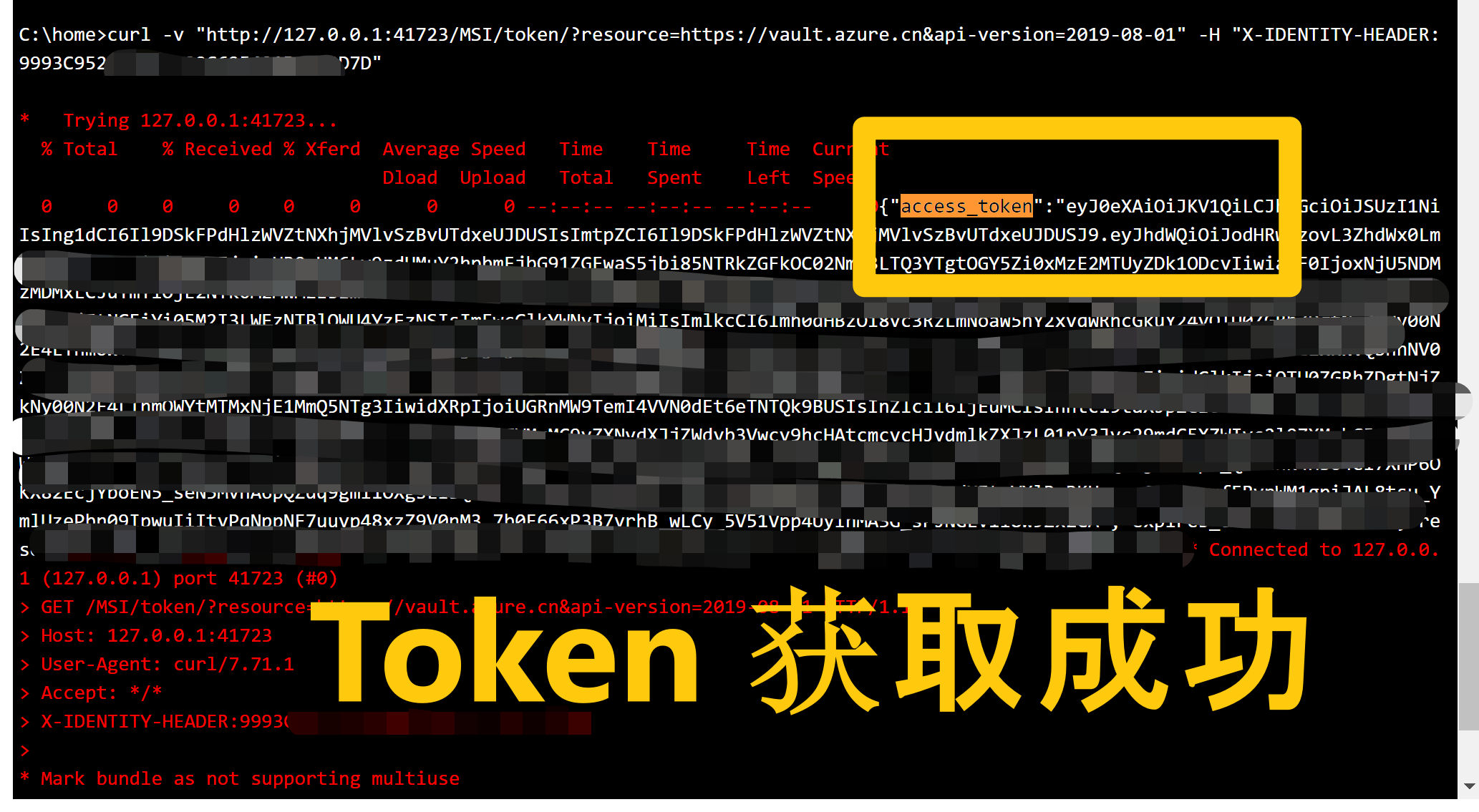curl -v "<IDENTITY_ENDPOINT>?resource=https://vault.azure.cn&api-version=2019-08-01" -H "X-IDENTITY-HEADER:<IDENTITY_HEADER>"