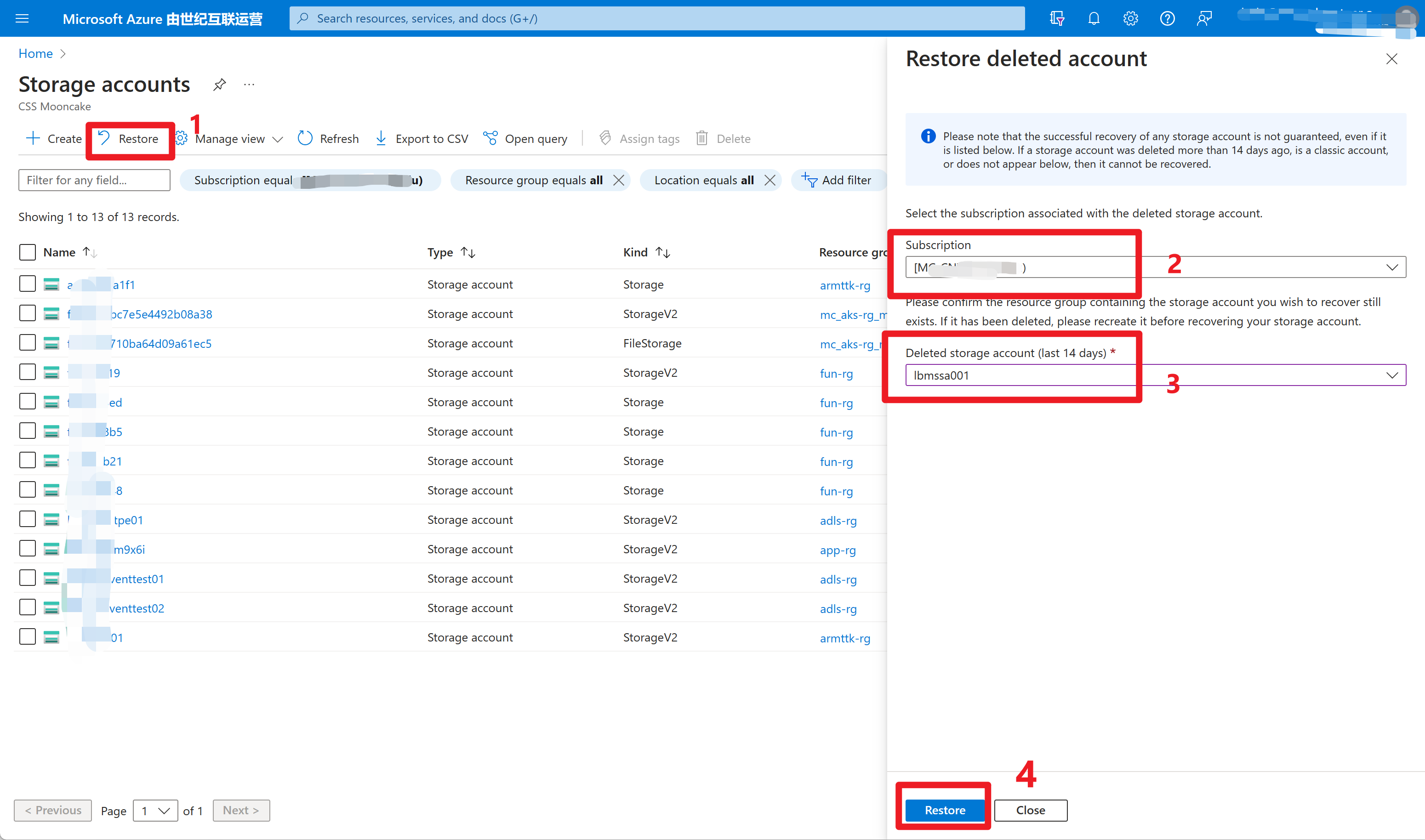 Azure 现在推出了自主恢复已删除的存储账号的功能,具体步骤如下: