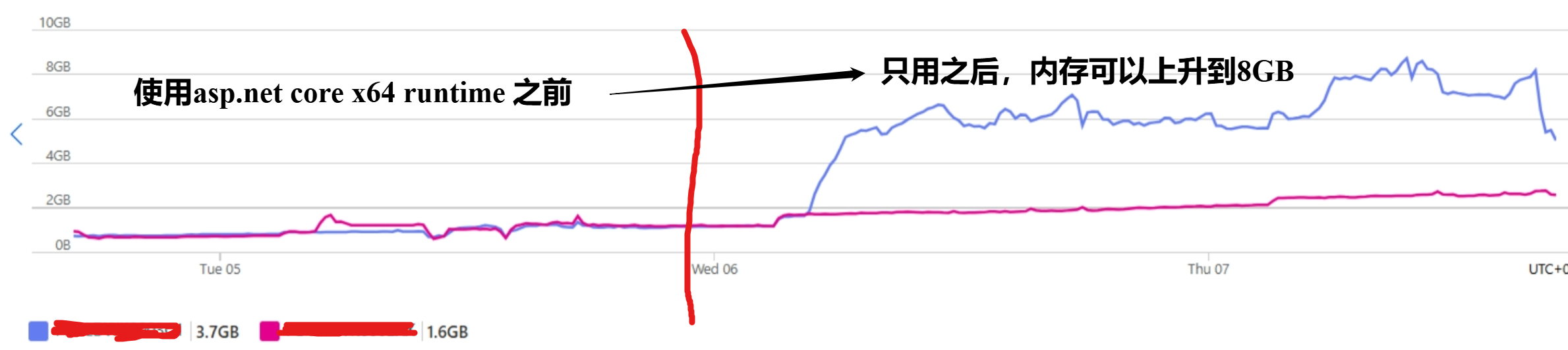 之后,监控App Service 指标,证明内存使用可以达到预期。