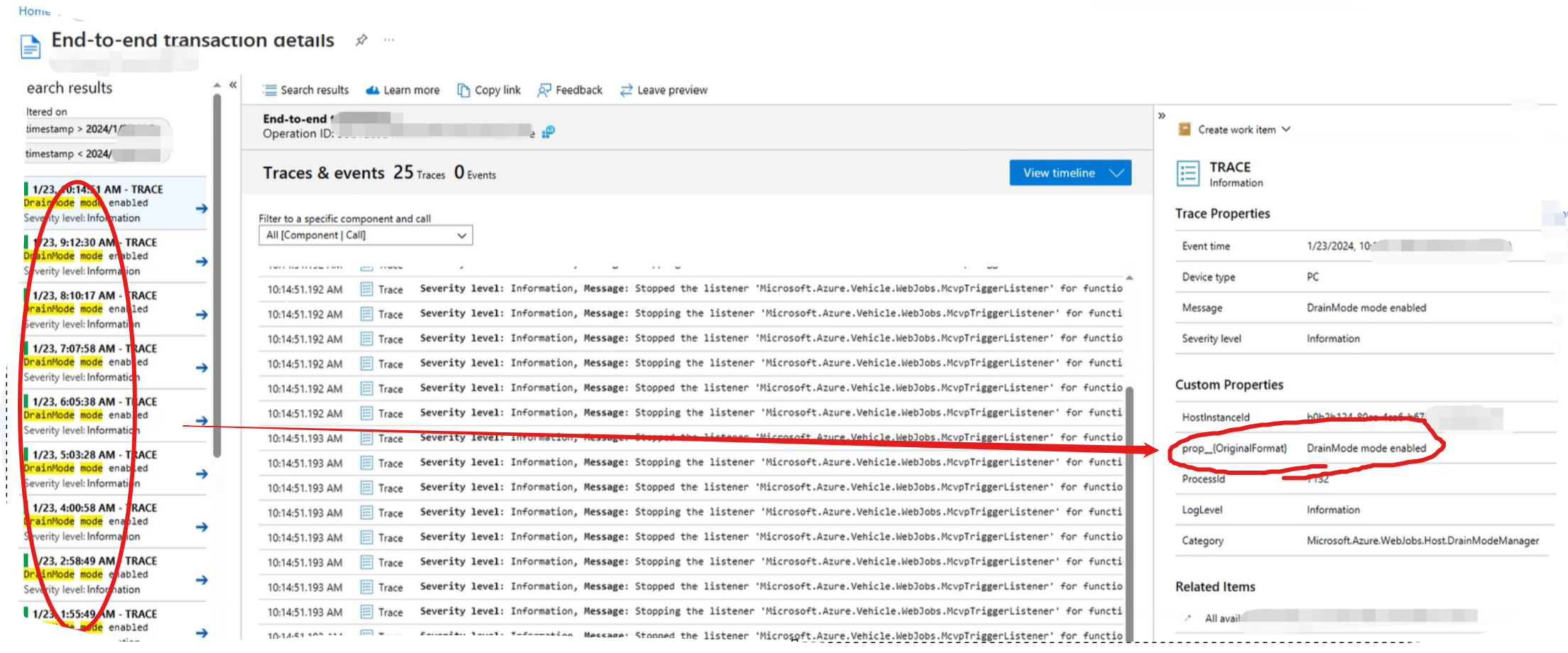 Applicaiton Insights收集了Azure Function的日志,定期发现有” DrainMode mode enabled Traces“。