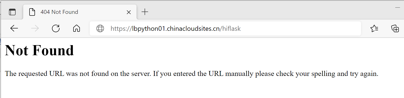 在成功的部署Python flask应用到App Service (Windows)后,如果需要把当前项目(如:hiflask)作为一个子项目(子站点),把web.config文件从wwwroot中移动到项目文件夹中。访问时,确遇见了404 Not Found的错误。